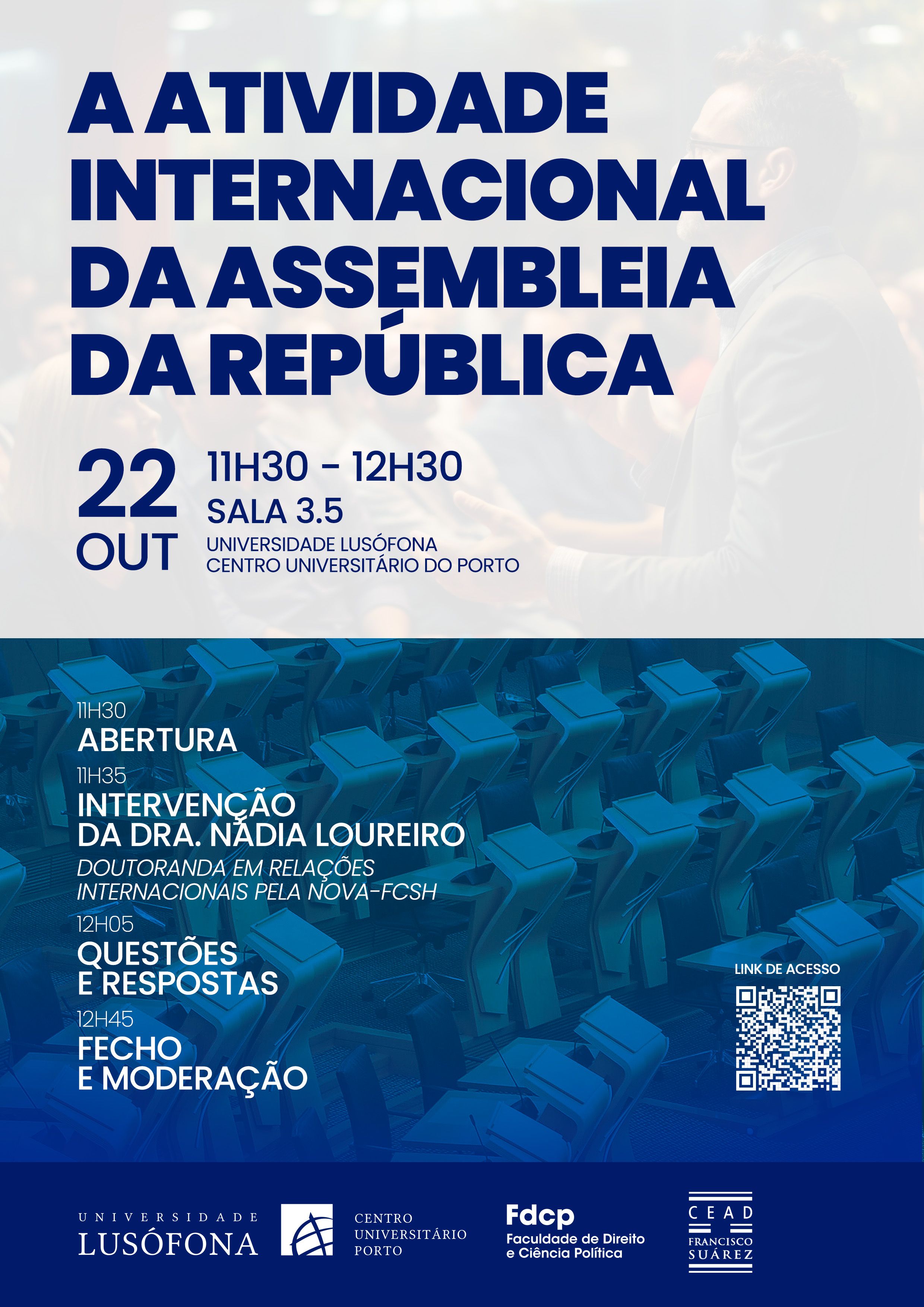 O evento realizar-se-á na Universidade Lusófona - Centro Universitário do Porto (Sala 3.5 e online), no dia 22 de outubro de 2024.